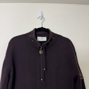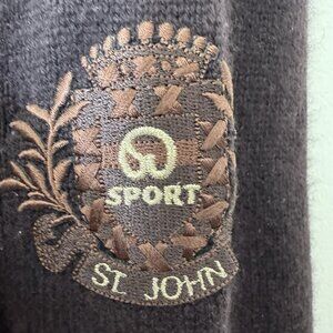St. John Sport Cashmere Full Zip Cardigan Sweater Women's Size L Logo Jeweled