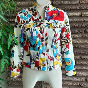 St. John Sport Colorful Butterfly Floral Trucker Denim Jacket READ