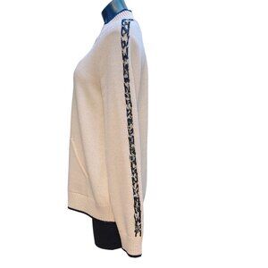 St. John Sport Cream Black Knit Cardigan Zipper Braided Sleeve Detail M