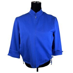 St. John Sport Essentials Royal Blue Full Zip Cropped Drawstring Waist Jacket Size 6