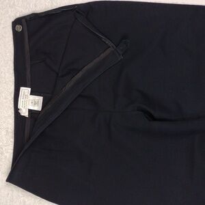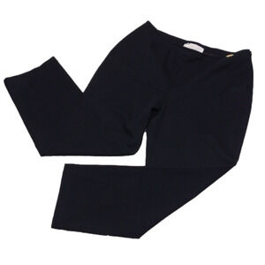 St. John Sport Essentials by Marie Gray Women's Black Navy High Rise Flat Front Side Seam Button Tab Zipper Closure Straight Leg Ankle Pants. 98% Cotton, 4% Spandex. Front Back Waistband Darts Detail. Gold Logo Waistband Emblem. Brand Tag Tear Per Photo. Measurements approx. Flay Lay. Waist: 15, Rise: 11, Hips: 20, Inseam: 25, Hem Opening: 7". Size 10. Color May Vary Due To Lighting.