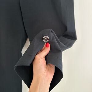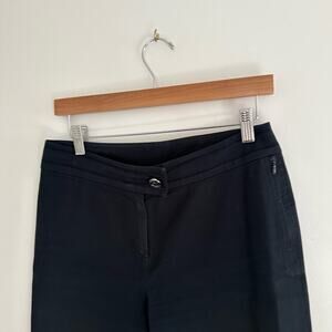 Details: St. John Sport Flat Front Cropped Casual Pants - Size: 4- Color: Black - Material: 96% cotton, 4% elastane- Features: Casual flat front cropped pants. Zip fly, button closure. Side slit on hem, pockets, slight stretch. Comfort, lightweight. Capri length - Cropped