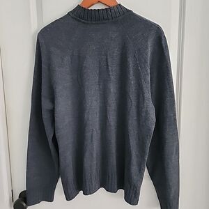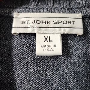 This luxury gray cardigan by St John Sport features a wool blend material with leather trim, making it a stylish and versatile addition to any wardrobe. The full zip design and collared neckline give it a classic look, while the long sleeves and XL size make it perfect for a casual occasion. With a sporty theme, this sweater is ideal for the winter, fall, and spring seasons, adding a touch of elegance to any outfit.