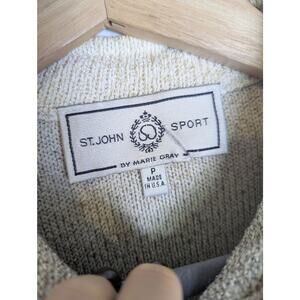 St John Sport Marie Gray Gold Beige Zip Santana Knit Metallic Sweater Petite XS