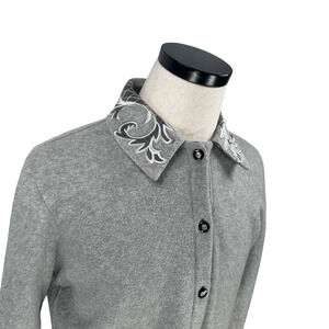 St. John Sport Marie Grey Fleece Light Jacket Women’s P Gray Embroidered Button