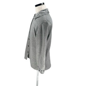 St John Sport Marie Grey Fleece Light Jacket Women’s P Gray Embroidered Button