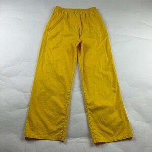 Excellent used condition, linen blend lightweight summer trouser has no notable signs of natural wear or overuse. 2 pockets, full elastic waist, wide relaxed legs. Size Small, please reference measurements for sizing & fit inquiries.