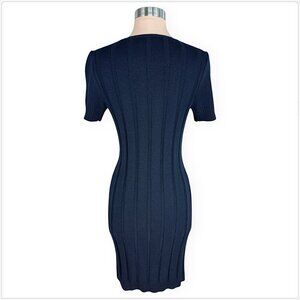 St. John Sport Navy Blue Ribbed Knit Short Sleeve Zipper Neckline Dress P Petite