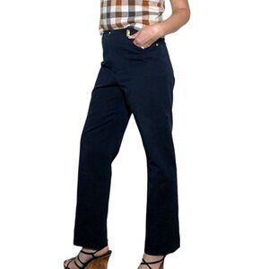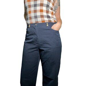 St. John Sport Navy Blue Wide Leg Chino Pants High Waisted Gold Logo 10 Y2K