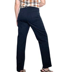 St. John Sport by Marie Gray Wide Leg Chino Pants Navy Blue Gold logo 10