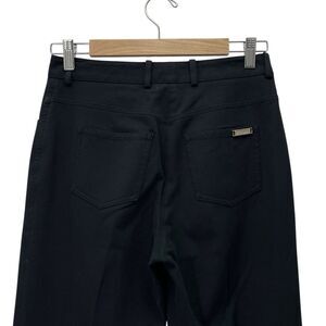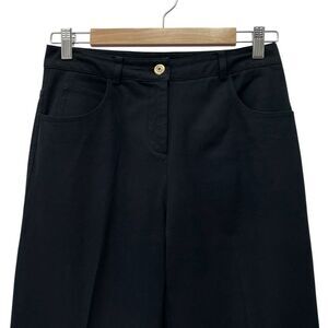 St. John Sport Pants Size 2 Black Stretch Cotton Straight Leg Gold Button VTG