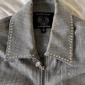 St. John Sport Petite Black & White Plaid Jacket with Silver Stud Detail