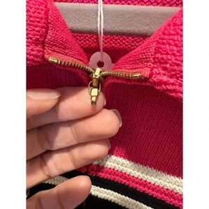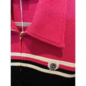 St. John Sport Pink Black Striped Knit Collared Zip Up Jacket Size Small
