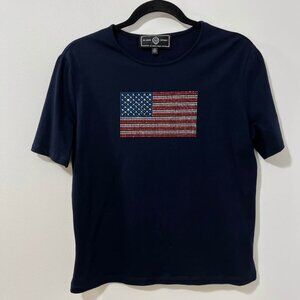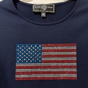 St. John Sport Navy Knit Tee – Rhinestone American Flag