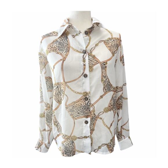 St John Sport Semi Sheer Animal Print Collared Button Front Blouse P