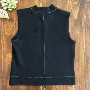St. John Sport | Sleeveless Sweater w/Mock Turtleneck, Shimmery Stripe