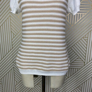 St. John Sport Striped Short Sleeve Knit Sweater in White & Tan Size US XS