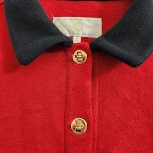 St. John Sport Sweater Medium Red Gold Button Down Collared Cotton Vintage Y2K
