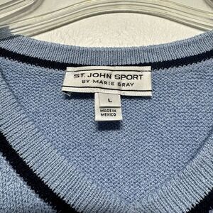St. John Sport Sweater Wool Blend Light Blue V-Neck Tight Knit Womens sz Large