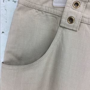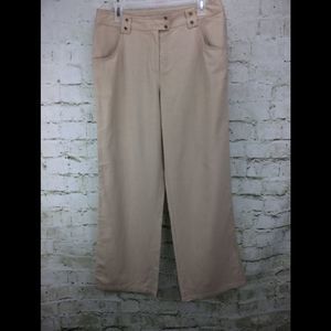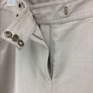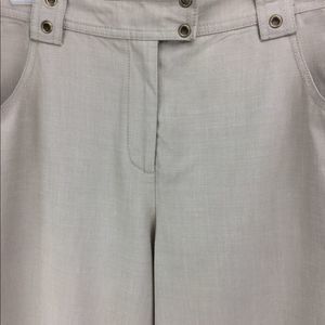St. John Sport Tan Straight Pants Trouser/Wide Leg Size 8. Grommets detail around the waist, Excellent Condition. 84% viscosa 14% Linen 2%Elastane.