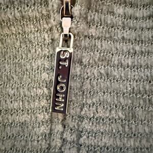 St John Sport Vintage Pastel Green Full Zip Cardigan & Tank Set is a chic and preppy outfit perfect for various occasions such as travel, party, casual wear, workwear, and business meetings. Made from a blend of rayon, viscose, and wool in a tight-knit fabric, this set features a mock neck and long sleeves with a full zip closure. The vintage design, accented with a zipper and logo detailing, exudes a classic yet hipster style ideal for outdoor activities, beach outings, or a touch of 80s and 90s flair. Made in the United States, this set is a timeless piece that adds a touch of designer sophistication to any wardrobe.