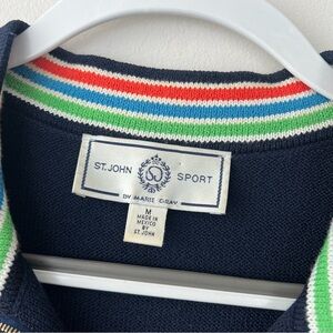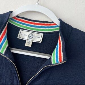 St. John Sport Vintage Quarter Zip Drawstring Waist Navy Sweater. some very minor discoloration around the collar, otherwise in great condition!