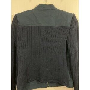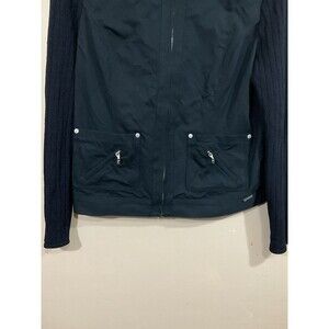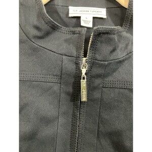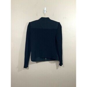 St John Sport Womens Mixed Fabric Knit Back Full Zip Jacket L Black Preppy