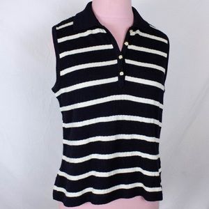 St. John Sport by Marie Gray Black Striped Polo Sweater