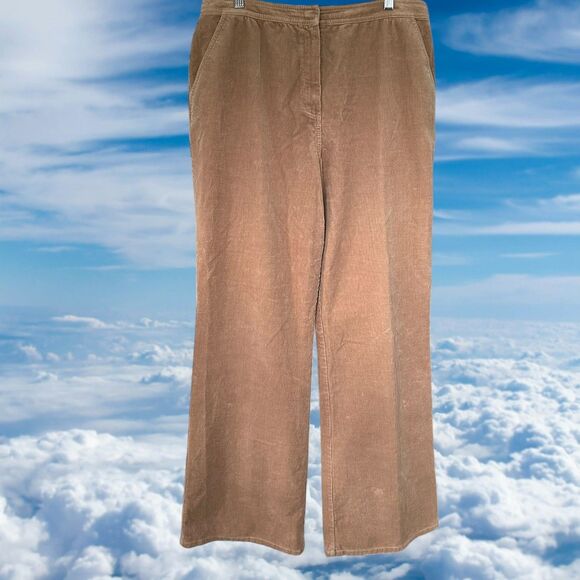 St. John Sport by Marie Gray Brown Corduroy Pants Size 12 Wide Leg High Rise