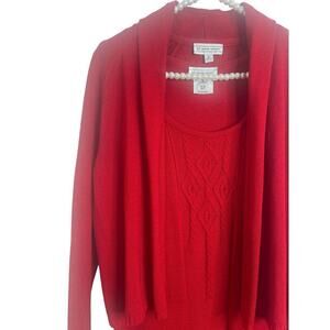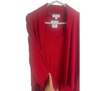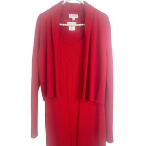 St. John Sport Red Knit Tank Dress with Red Open Front Cardigan