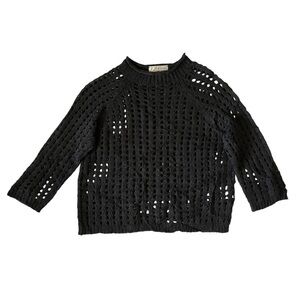 St. John Sport by Marie Gray black wool open-knit crochet cropped sweater top