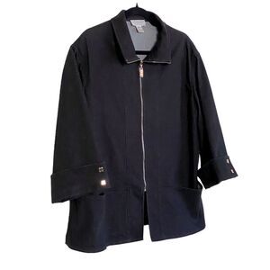 St John Sport by Marie Gray Black Denim Zip Up Jacket Sz S