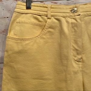 St. John Sport by Marie Gray Marigold yellow Bermuda Shorts in a womens size 8 Regular. Cotton and Spandex blend and has stretch. Gold accents on the back and pocket, see pictures for details. Classic high rise and hits at the knee. Zipper fly and button closure. No rips, stains or holes and comes from a smoke free environment.