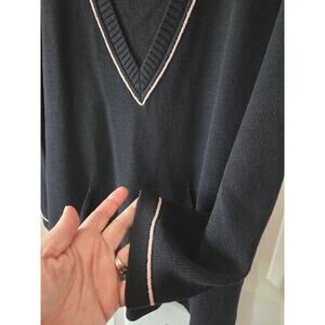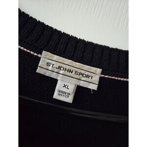 St John Sports XL Sweater Black Pink V Neck Pullover Wool Rayon Mexico