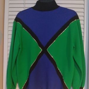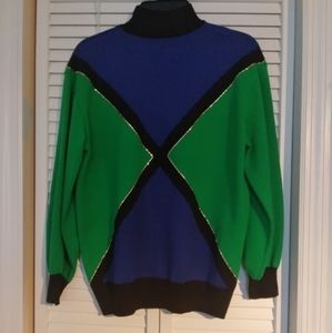 St John Sportswear Vintage Black/ Green/Blue Embellished Oversized Sweater.