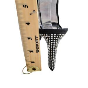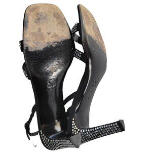 St. John Storm Black Crepe & Rhinestone Heels Women Size 8 B