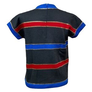 Beautiful color blocked rows in red , blue & slate accented by gold studs