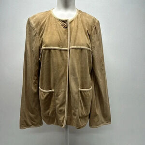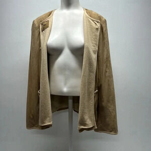 St John Suede Leather Coat Jacket Cashmere Lined Pockets Tan Beige Womens Size 8