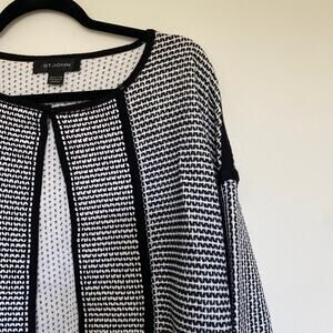 St. John Sweater Cardigan Open Front Shaw Chevron Print Stretch Chic Work Classy