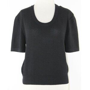 St John Sz M Black Scoop Neck Pullover Santana Knit Wool Blend Top
