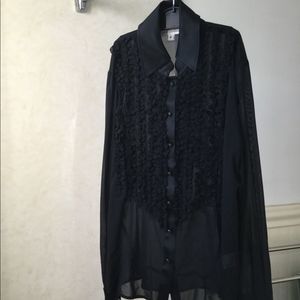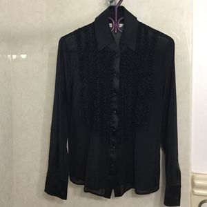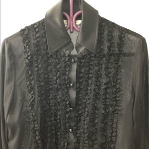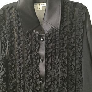St. John Sz 6 Black Silk Ruffle Blouse Sheer
