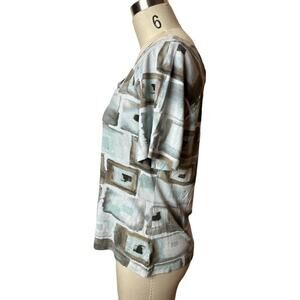 St. John Tan Short Sleeve Round Neckline Top Women's Size XL