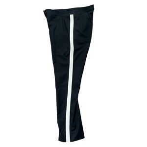 - Unique white tuxedo racer stripe on side hem