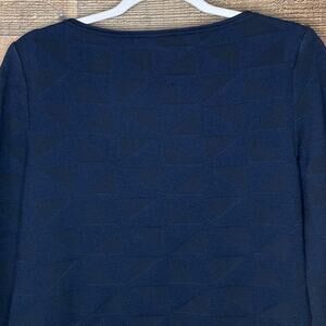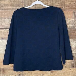 St. John Textured Cropped Sleeve Top Wool Blend Navy Blue Size Small