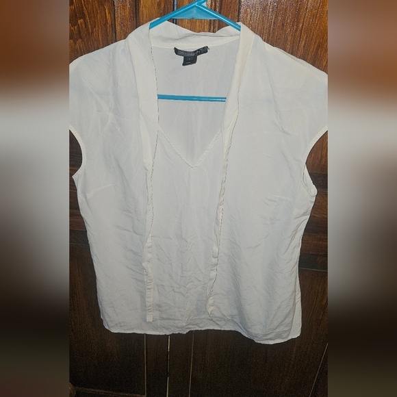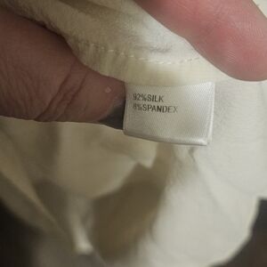 St. John Tie Neck Women's Blouse Sz 8 Ivory Silk Spandex Blend Casual Summer