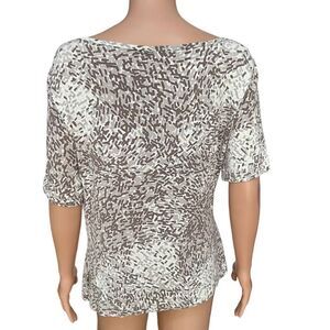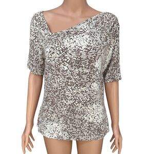 St. John Top Short Sleeve Stretch Rayon Asymmetric Neck Tee Shirt Brown size L