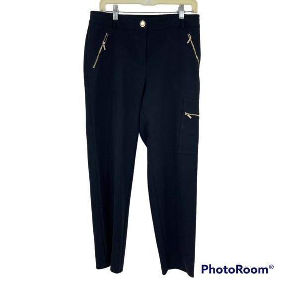 St. John Trousers Black Zip Pockets Straight Leg Stretch Casual Work Pant Size 8