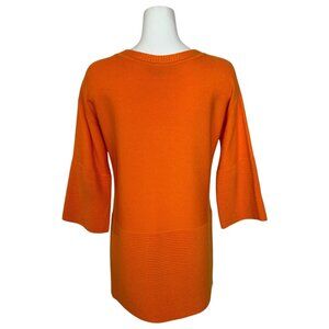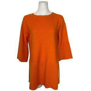 St. John Tunic Sweater 8 Orange 3/4 Sleeve Crew Pullover Ribbed Knit Wool Blend