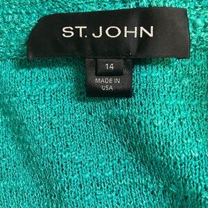 St. John Turquoise Boucle Knit Blazer Size 14 Made in USA - Like New