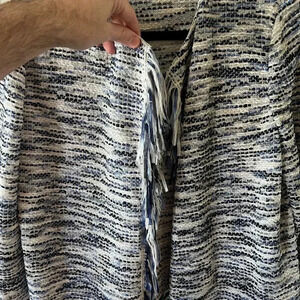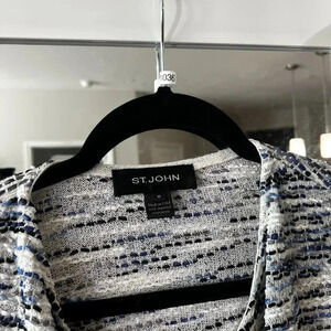St. John Tweed Style Cardigan Sweater Jacket Size Medium Color Blue White